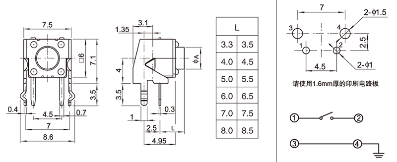 轻触开关TS-038
